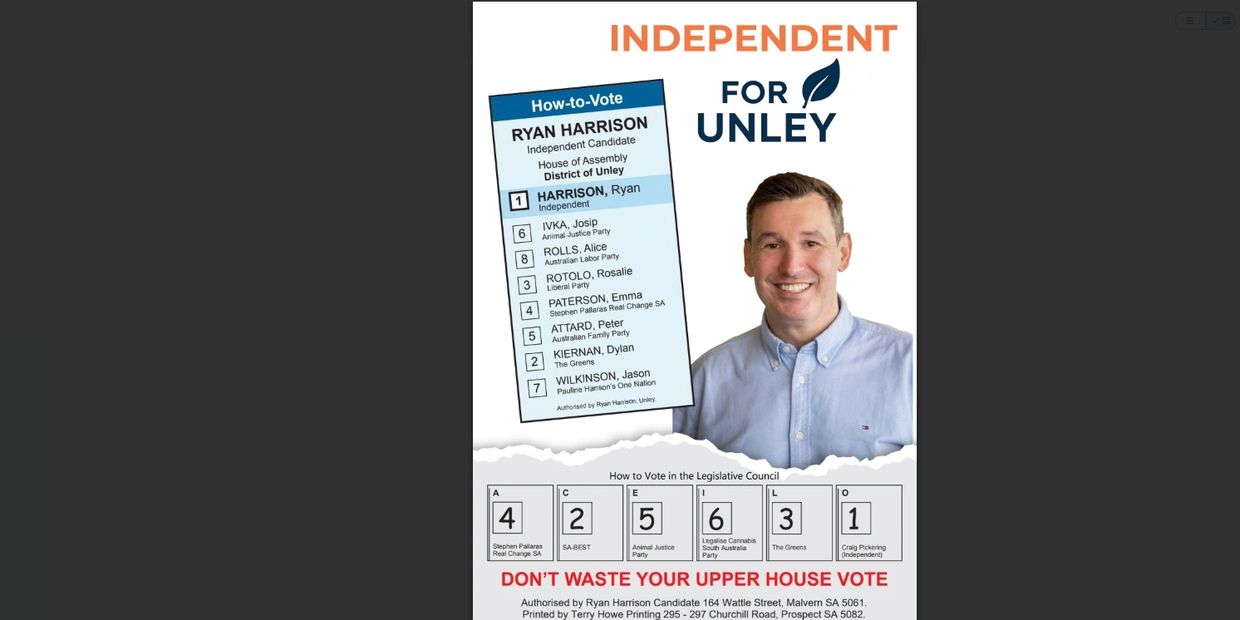 Authorised by Ryan Harrison Independent for Unley